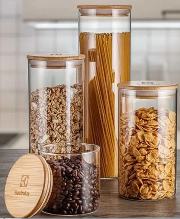 Nosso kit possui 20 Potes Herméticos Porta-Mantimentos com Tampa de Bambu Electrolux que contam com vedação hermética com anel de silicone, o que garante selagem perfeita que ajuda a manter o sabor e as texturas originais. Ideais para armazenar temperos, sementes, farinhas, cereais, grãos, café, macarrão, biscoito, doces, torradas e outros alimentos secos. Outros benefícios incluem: